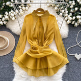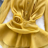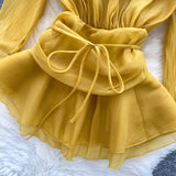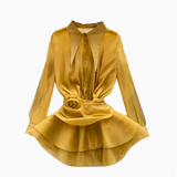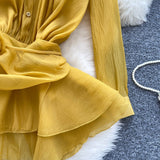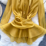 Düzensiz Tasarım Volanlı Şifon Bluz