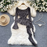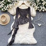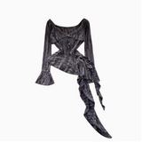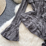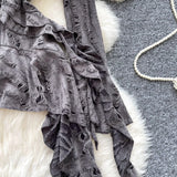 Düzensiz Tasarım Volanlı Yırtık Üst