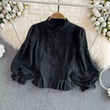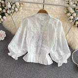 Saray İşlemeli Dantel Patchwork Bluz