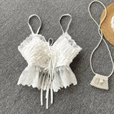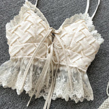 Tatlı Dantel V Yaka Dokuma Desenli Bluz
