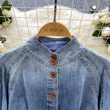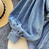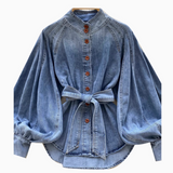 Vintage Düz Yaka Kemerli Kot Gömlek