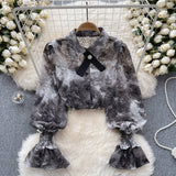 Vintage Kabartmalı Kol Tie-dye Gömlek
