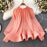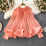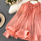 Yuvarlak Yaka Volanlı Şifon Bluz