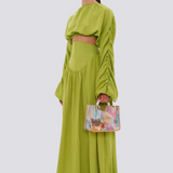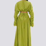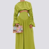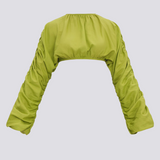 - Tasarım: Yuvarlak yaka üst ve pliseli uzun kollardan oluşan ikili set