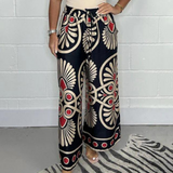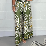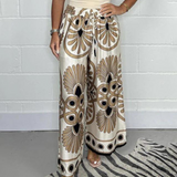 Geniş paça Aya saten pantolon, rahat bir giyim konforunu şık bir tasarımla bir araya getiriyor