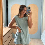 İçinizdeki plaj tanrıçasını Aya™ Takımı ile serbest bırakın; deniz maceralarınız için konfor ve stilin mükemmel karışımı. Bu üst ve şort takımı, kıyıda dinlenmek veya plaj boyunca yürüyüş yapmak için ideal olan rahat bir kesim sunar. Aya™ Takımı ile şık ve rahat kalın, gün boyu serin ve şık kalmanızı sağlamak için tasarlanmıştır.