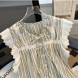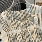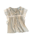 Bağcıklı Volan Kol Çizgili Bluz