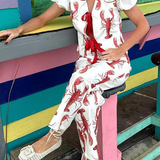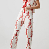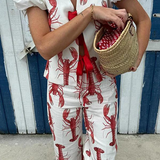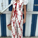 Bizim Belinda™ Setimiz, beyaz zemin üzerinde çekici bir kırmızı ıstakoz baskısıyla dikkat çekiyor. Bu şık ensemble, konforu eğlenceli bir dokunuşla birleştiriyor, deniz kenarında yürüyüşler veya rahat geziler için mükemmel. Set, önünde kırmızı bir fiyonk bulunan, puff kollu kısa kollu bir bluz ve rahat bir uyum için bol paçalı pantolon içeriyor. Görünümü tamamlamak için bir hasır çanta ve kaydırmalı ayakkabılarla aksesuar edin.