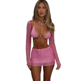Plaj ve yaz tatilleri için mükemmel bir seçenek olan bu örgü plaj takımı, nefes alabilen kumaşı sayesinde rahat bir kullanım sunar. Uzun kollu üst ve mini etek tasarımı ile şık bir görünüm kazandırır. Göğüs pedi ve çelik balen içermeyen bu model, vücuda tam oturan yapısıyla konfor sağlar.