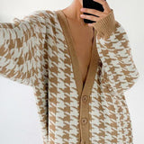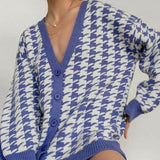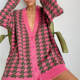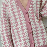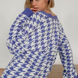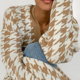 Büyük Beden Houndstooth Desenli Triko Hırka