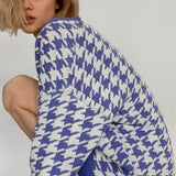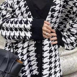• Tasarım: Klasik houndstooth desenli büyük beden hırka
