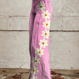 Çiçek Açan Pembe Papatya Salaş Pantolon